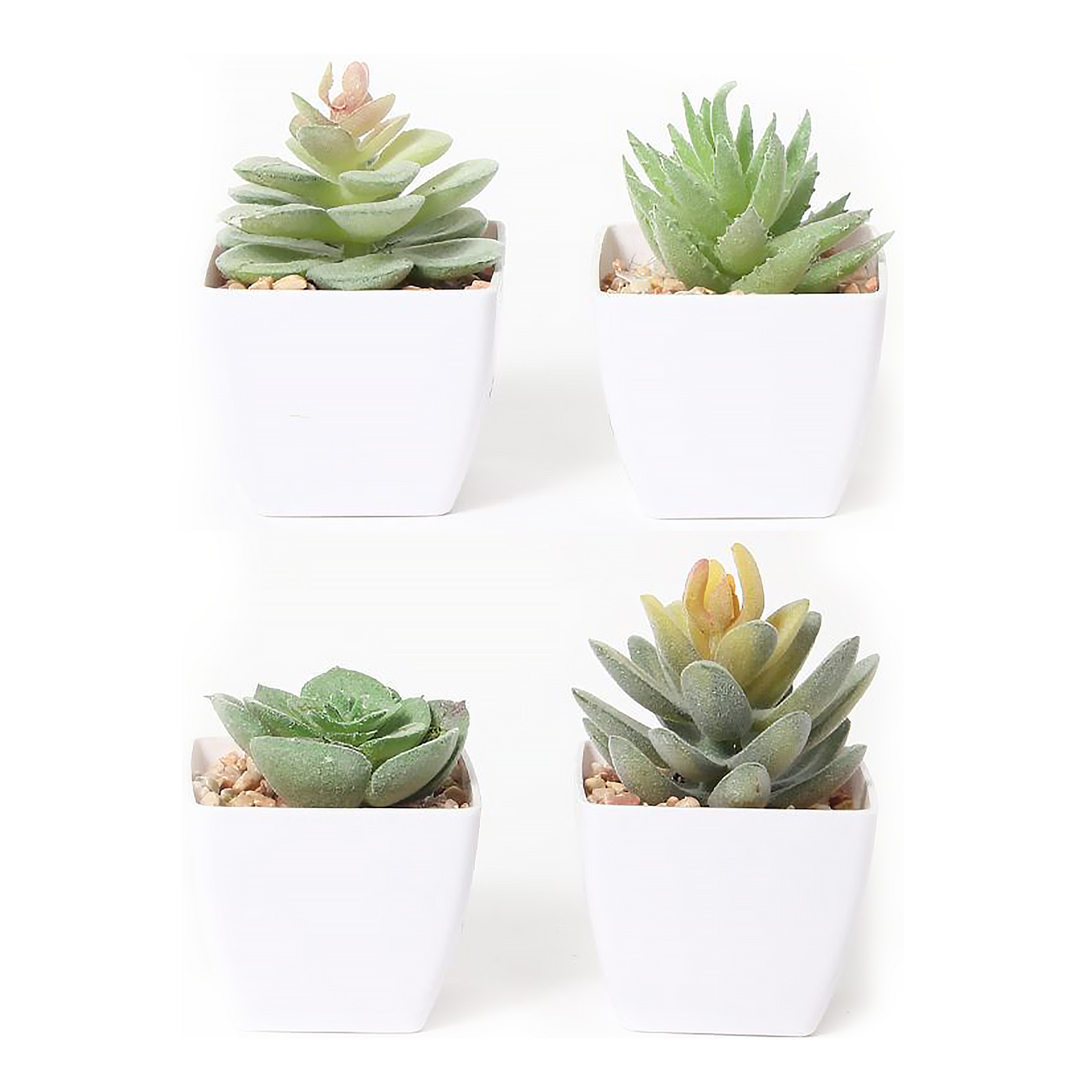 4 paquetes de plantas verdes artificiales de plástico de 5,5 x 5,5 x 6,5 cm, simulación de macetas, adornos creativos, decoración.DH155342
