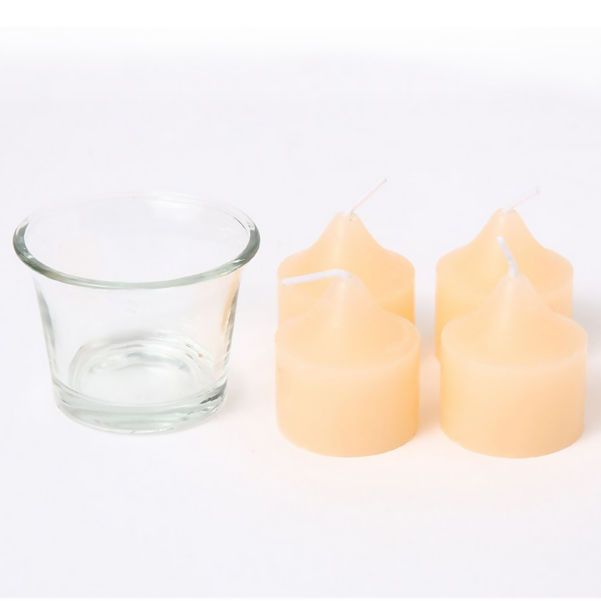 Juego de velas de aromaterapia (4 velas + 1 vaso) 3,5*4CM sabor a higo de parafina (color champán) que arde durante 3 horas