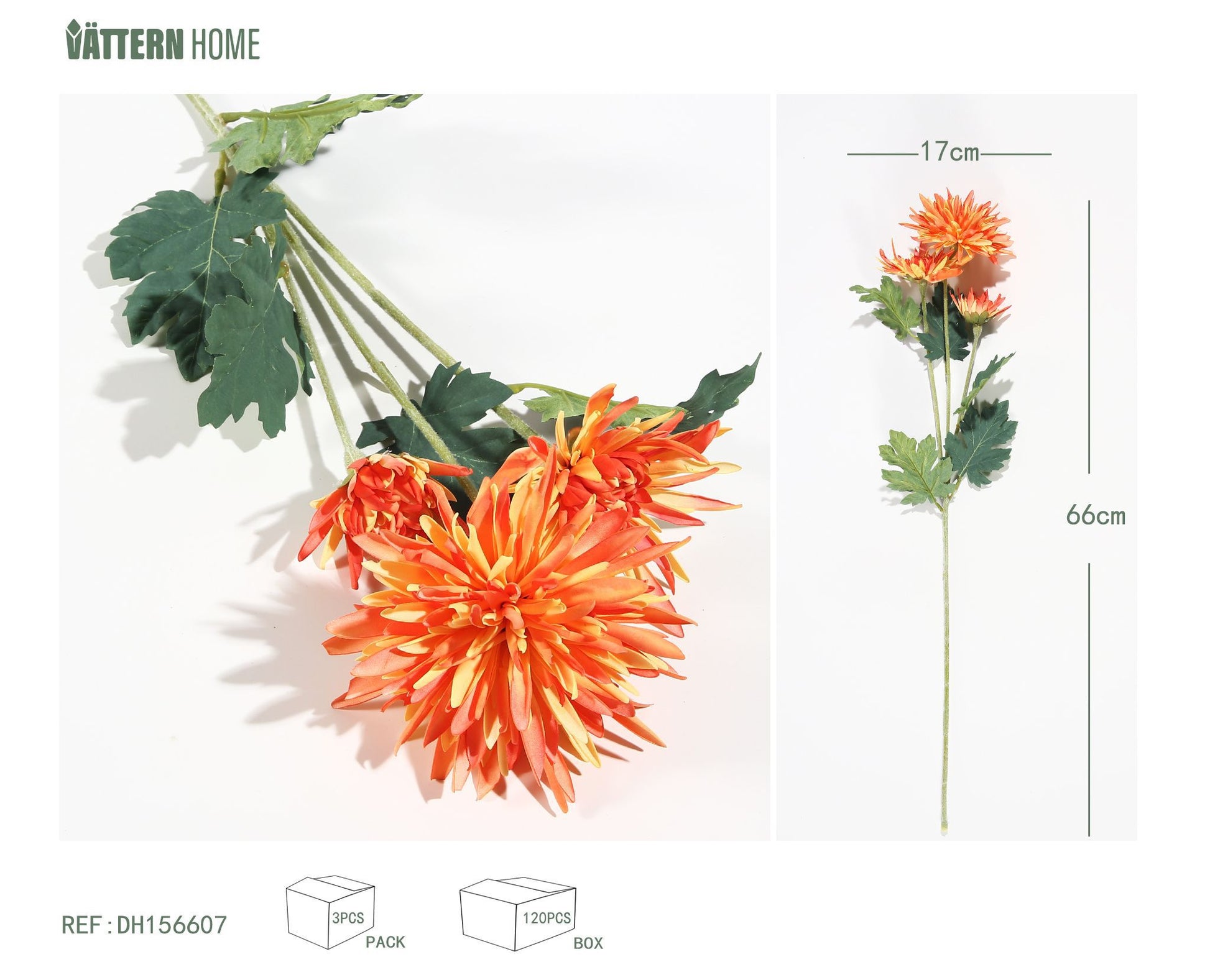 Crisantemo de 3 agujas de seda, 66 x 17 cm, color naranja