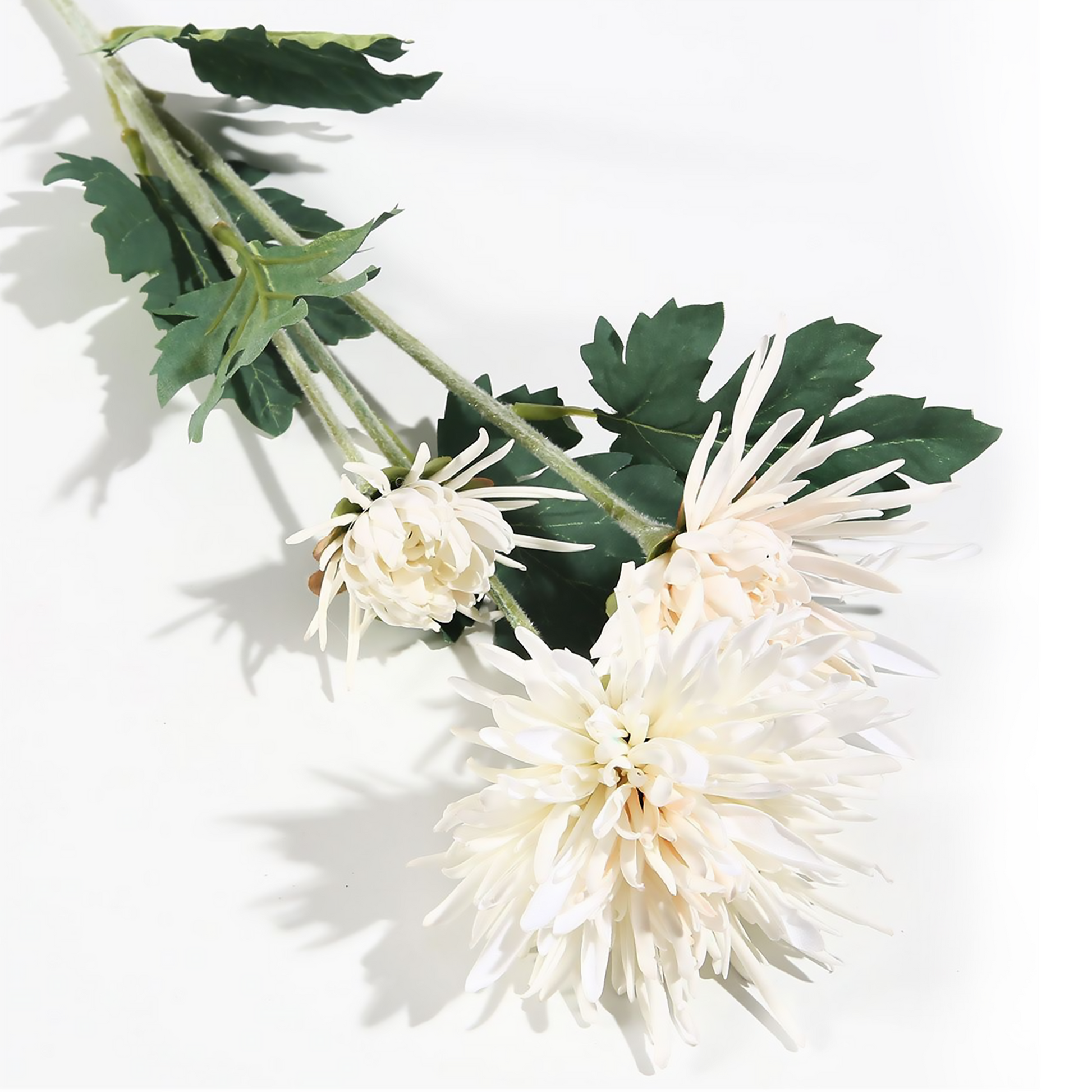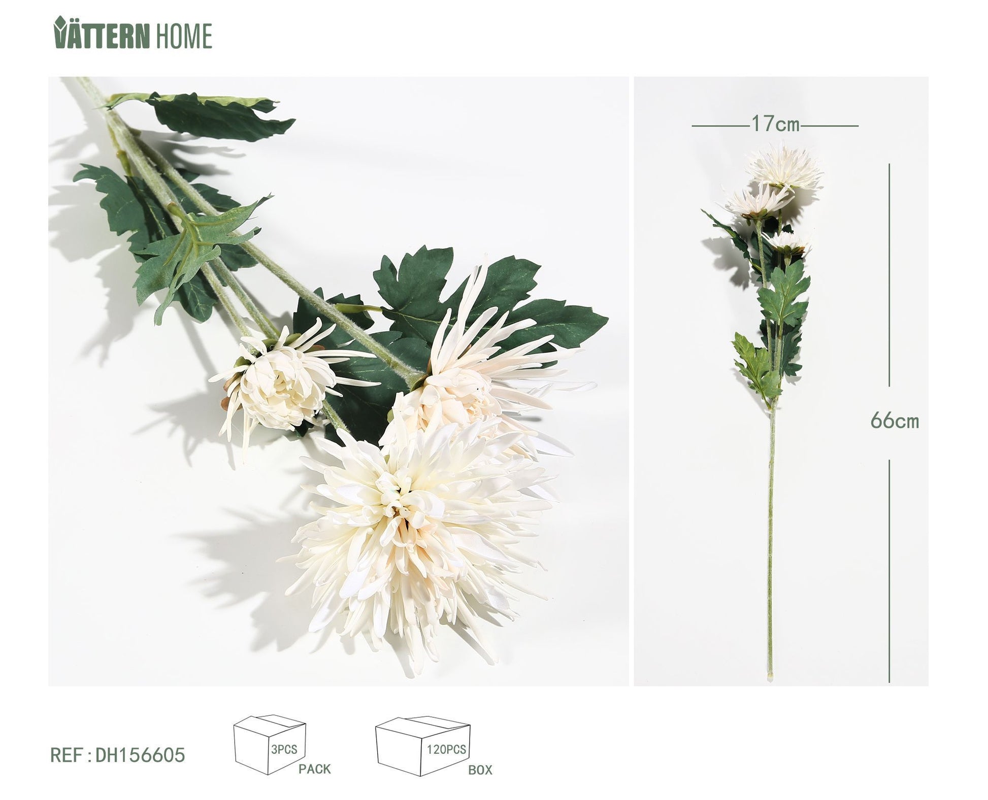 Crisantemo de 3 agujas de tela de seda, 66 x 17 cm, color blanco