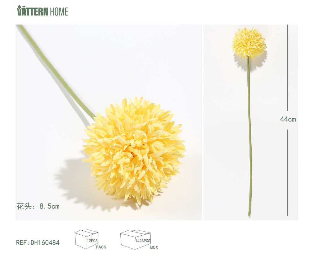 Flor artificial de bola de cebolla individual de 44 cm y 8,5 cm de tela de seda.