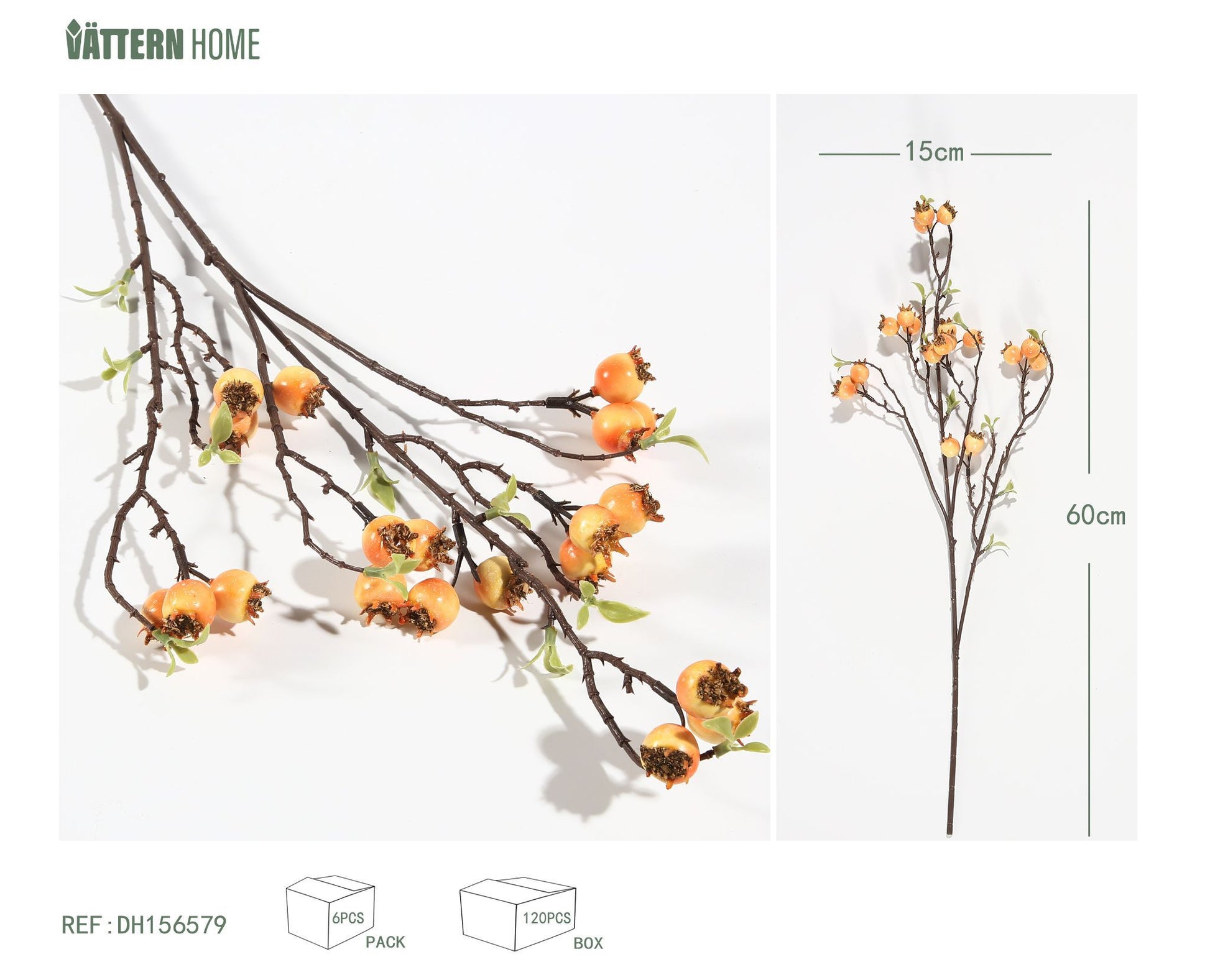 Flor de granada de una sola rama con múltiples horquillas, 60 x 15 cm, color naranja