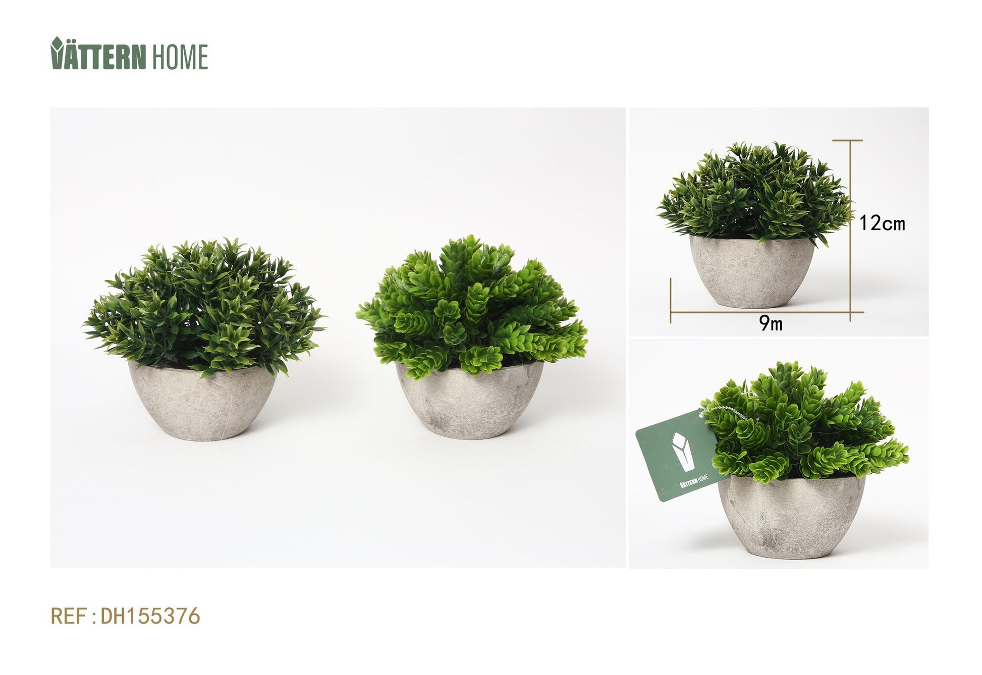 Maceta artificial de cemento con césped (paquete de 2), 9 x 9 x 12 cm