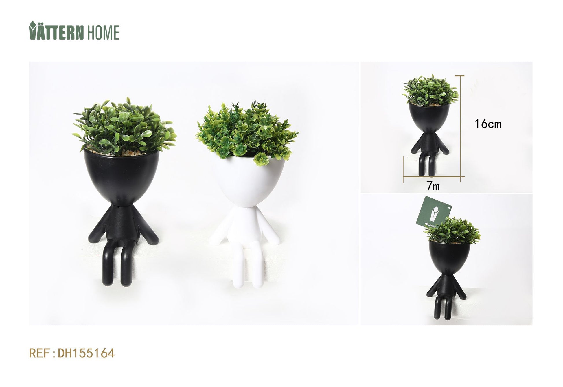 Maceta artificial de cerámica de dos piezas con forma humana de 7 x 16 cm