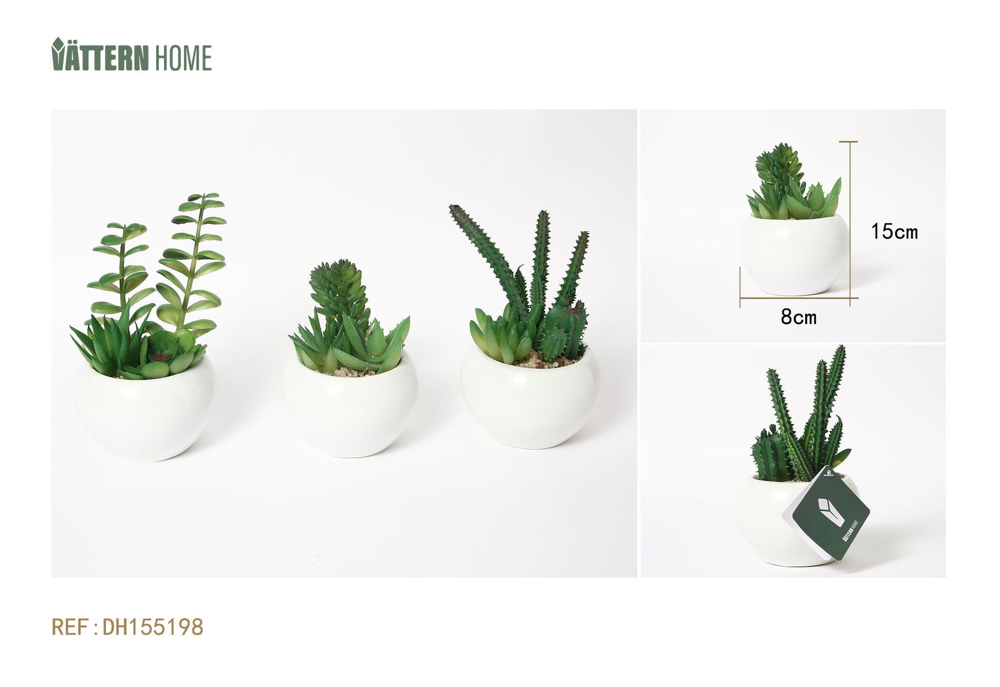 Tres macetas artificiales de cerámica verde de 8 x 13 cm