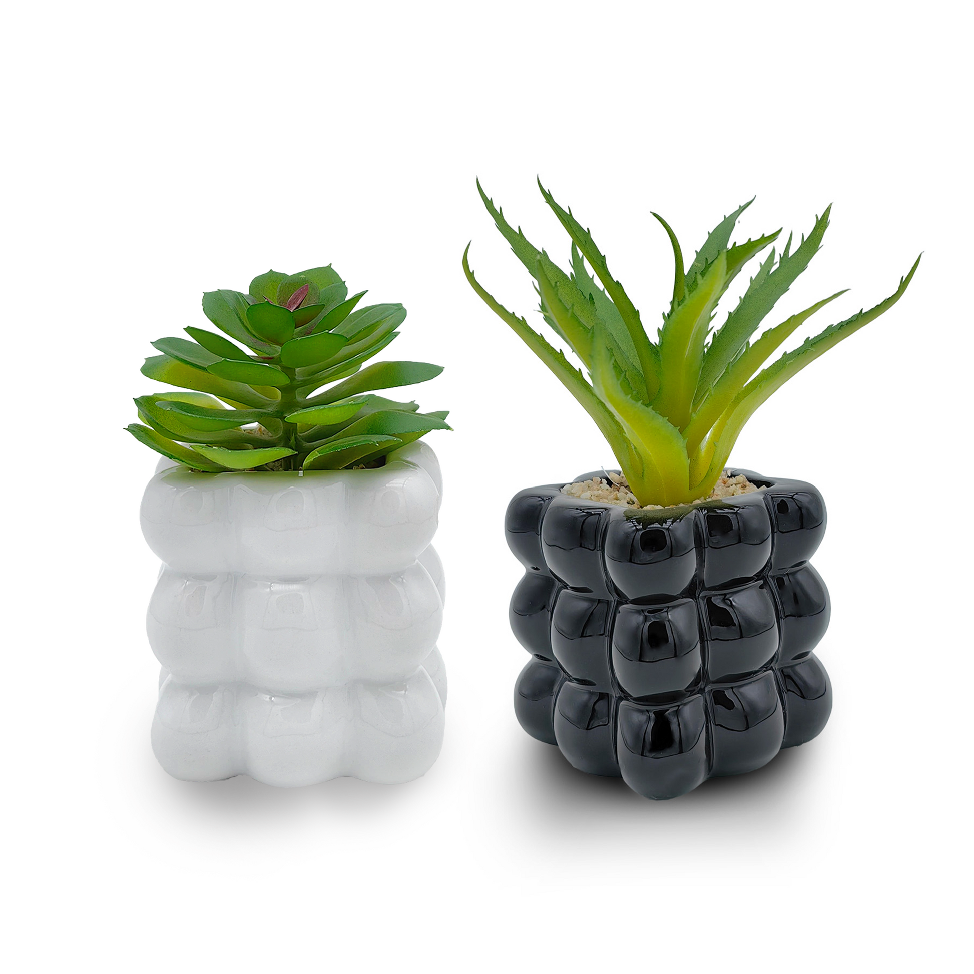 Maceta artificial de cerámica cuadrada, paquete de dos, 8 x 15 cm