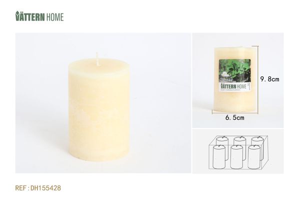Vela de pilar de 6,5 x 9,8 cm, de parafina, sabor vainilla (blanco lechoso), duración de combustión de 40 horas