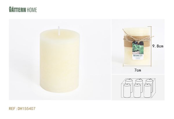 Vela de pilar de 7 x 9,8 cm, de parafina, sabor vainilla (blanco lechoso), duración de combustión de 40 horas