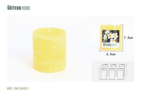 Vela de pilar de parafina de 6,5 x 7,3 cm con aroma a frangipani PLUMERIA (amarillo) que dura 30 horas